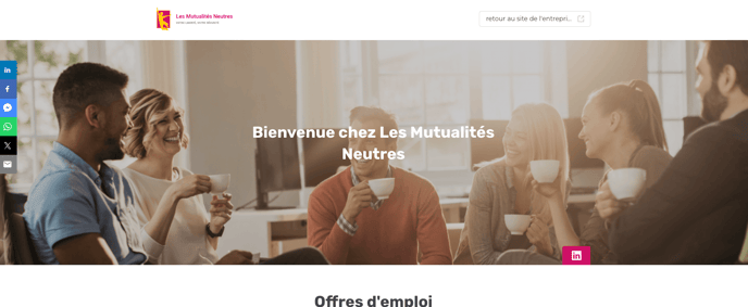 Un exemple de cette option est Les Mutualités Neutres. En cliquant sur "Jobs" en haut à droite, vous serez redirigé vers le site Jobtoolz correspondant.