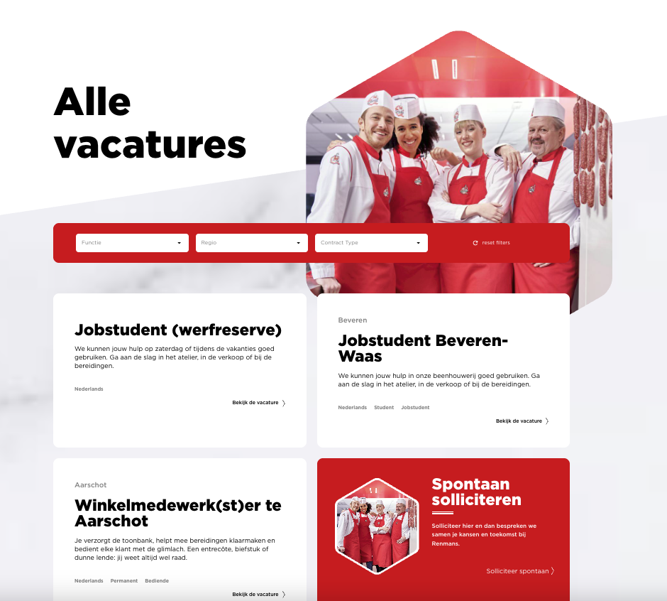 Un exemple d'un utilisateur de Jobtoolz qui utilise notre API est Renmans Sur la page des offres d'emploi, vous trouverez toutes les offres qui ont d'abord été créées et publiées dans Jobtoolz. Le formulaire de candidature est également intégré dans le site de Voka. Les candidatures soumises sont ensuite transférées à Jobtoolz pour être gérées dans notre ATS.