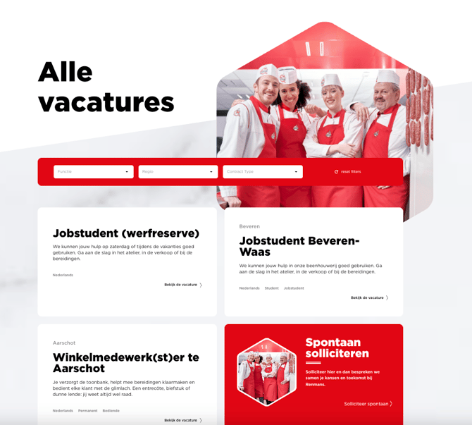 Een voorbeeld van een Jobtoolz-gebruiker die onze API toepast, is Renmans. Op hun werken-bij pagina vind je alle vacatures die eerder werden aangemaakt en gepubliceerd in Jobtoolz. Ook het sollicitatieformulier is geïntegreerd op hun eigen site. Sollicitaties komen automatisch binnen in Jobtoolz en worden daar beheerd.